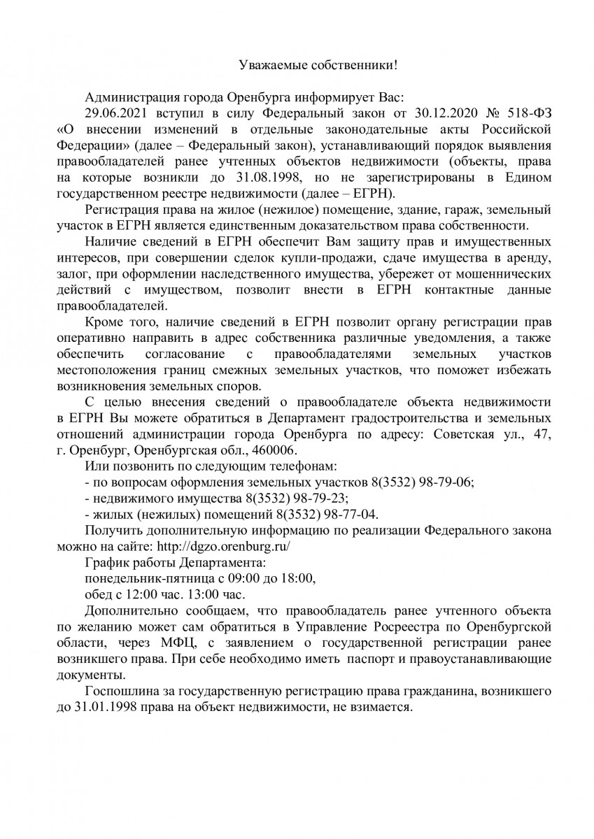 Информация для собственников.
